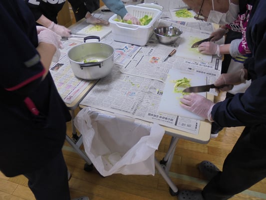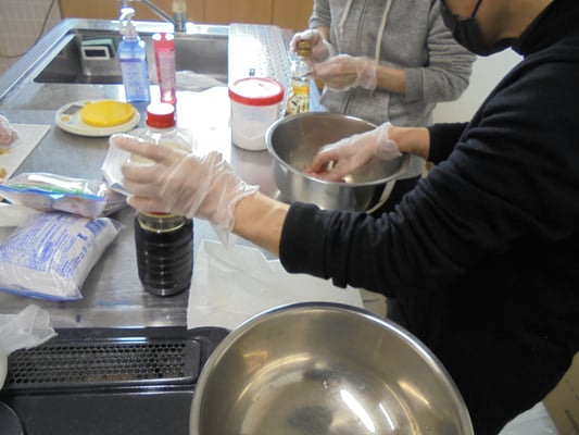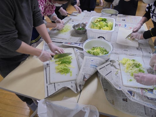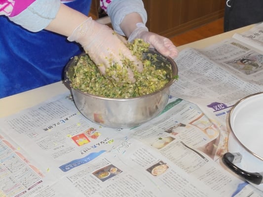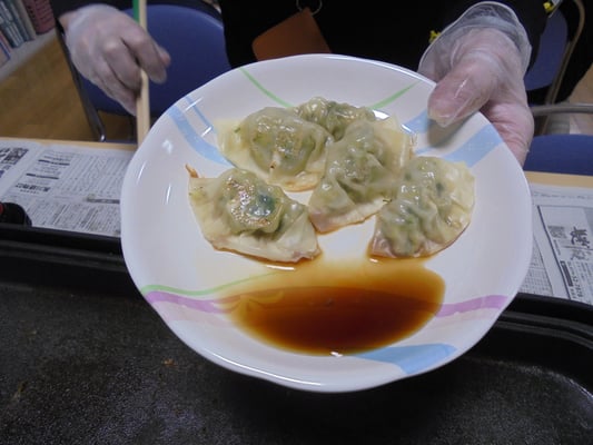 今回お伝えするのは、まず2月14日の「お楽しみタイム」の活動です。なんと餃子パーティを執り行いました。白菜とキャベツは、秋に苗から育てたものです。これもメンバーさんのアドバイスをいただき、植え付けから収穫まで無事に育ちました。いろいろな経験や体験からのアドバイスは、知識不足(知識だけ?)のスタッフたちにとって、とても助かりました。ありがとうございます。料理過程の写真はメンバーさんが撮ってくださったものです。和気あいあい💛と切ったり盛ったりくっつけたり・・・素晴らしく美味しく出来上がりました。中にはわざと!?シュウマイのように作り上げた方もいて、「あんな風に作ればよかった。」と皆の羨望を集めていました。個性って大事ですね。