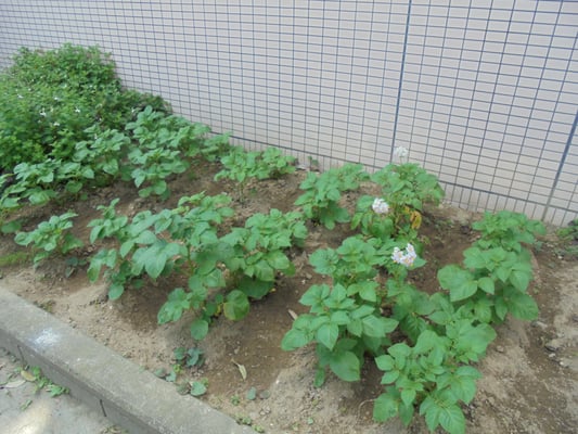 5/16(火)AMの「ガーデニング」では、まさにガーデニング日和♪なよいお天気となりました。いただいたトマトとナスの苗を、皆さんで力を合わせて植えました。大きくなるのが楽しみですね。以前植えたジャガイモの苗も、無事に芽がでてすくすくと育っております♪