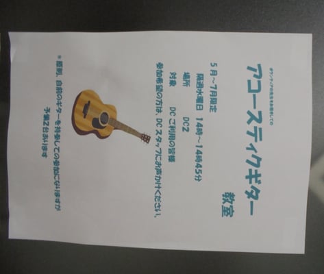 そして新たな取り組みとして、今月からボランティアの先生をお招きしての「アコースティックギター教室」がはじまりました!5月~7月限定で、隔週水曜日14:00~14:45に実施されます。参加をご希望の方は、デイケアスタッフまでぜひお声がけください!原則自前のギターを持参しての参加になりますが、デイケアにも予備として2台ご用意しております。来月は6/14と6/28に実施予定です♪